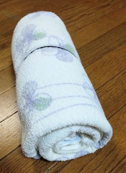 説明通りに作るタオル枕、朝へたっています。もともとが柔らかいので、これでは物足りない。