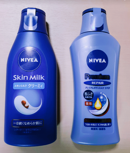 濃い色のニベア(安い方)の方がしっとりしていて、どちらかと言うと好き。薄い色(プレミアム)は、プルっとするっとしている。(ちょっと物足りないらしい)