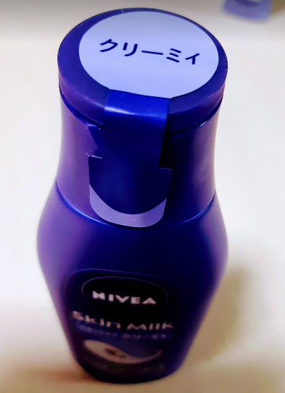 今までより安い気がするニベア↓390円くらい。200g。クリーミィ、乾燥肌と書いてあります。