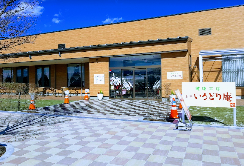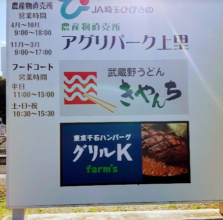 この一帯が、「このはなパーク上里」という名前の上里町の観光スポットです。関越自動車道路の上里スマートICを降りてすぐの便利な立地です。目指す「きやんち」は、パーク内の「アグリパーク上里」という農産物直売所のフードコートにあります。