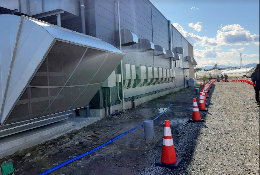 建物外には、こんなに大きなダクトがありました。これからたくさんの人が来るんだろうな~。