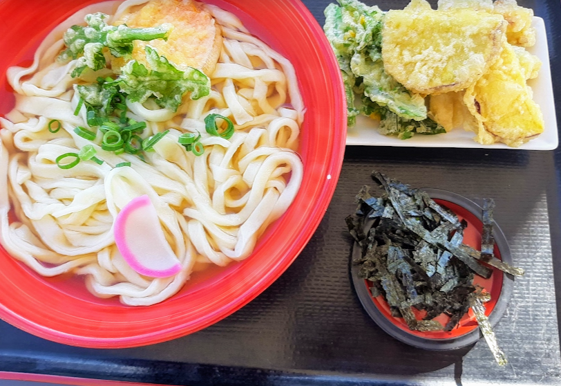 いよいよ!うどんをいただきまーす。ここ「アグリパーク上里」は、地元農協の農産物直売所です。旬の野菜がたくさん売っています。