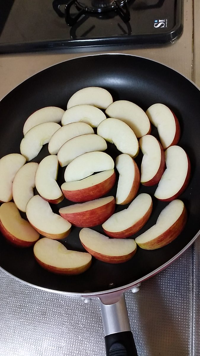 *りんご1個の場合、はじめに7分と裏返して1分。(裏返した時点で水分がなければ、火を止め蓋をしたまま1分蒸す)