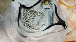 - 4ヵ月使用したマグネシウムボールの様子が見たくて、つける前にマグネシウムネットを開けてみました。(チャックの先がずれないように縫い付けていたので、ずっと開けていなかったのです)。すると、3重の洗濯ネットに入れたマグネシウムボールの1重目のネットが破れていました。毎日洗濯槽で揉まれた証拠、お疲れ様!