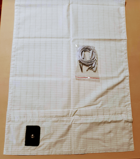 この生地には、純銀ナイロン繊維が織り込まれています。金属の中で、銀は一番放電に優れているので、アーシングに向いています。