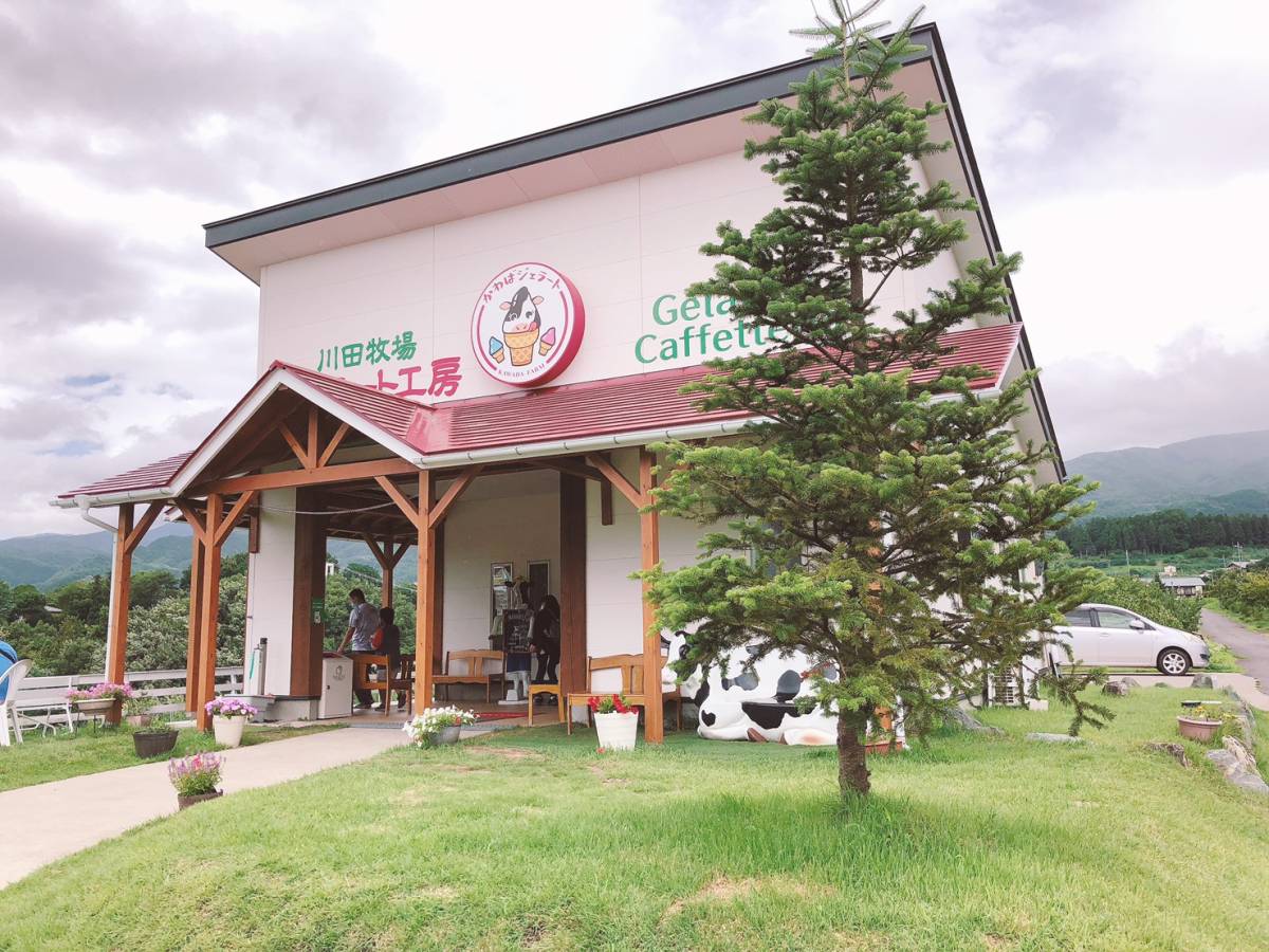 帰り道、車で山を下って行くと、蝉の鳴き声も聞こえはじめ、だんだん暑くなってきました。そこで、高速道路に入る前に、お楽しみのスイーツ。本日はここ