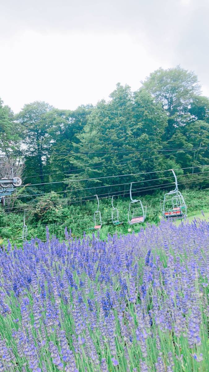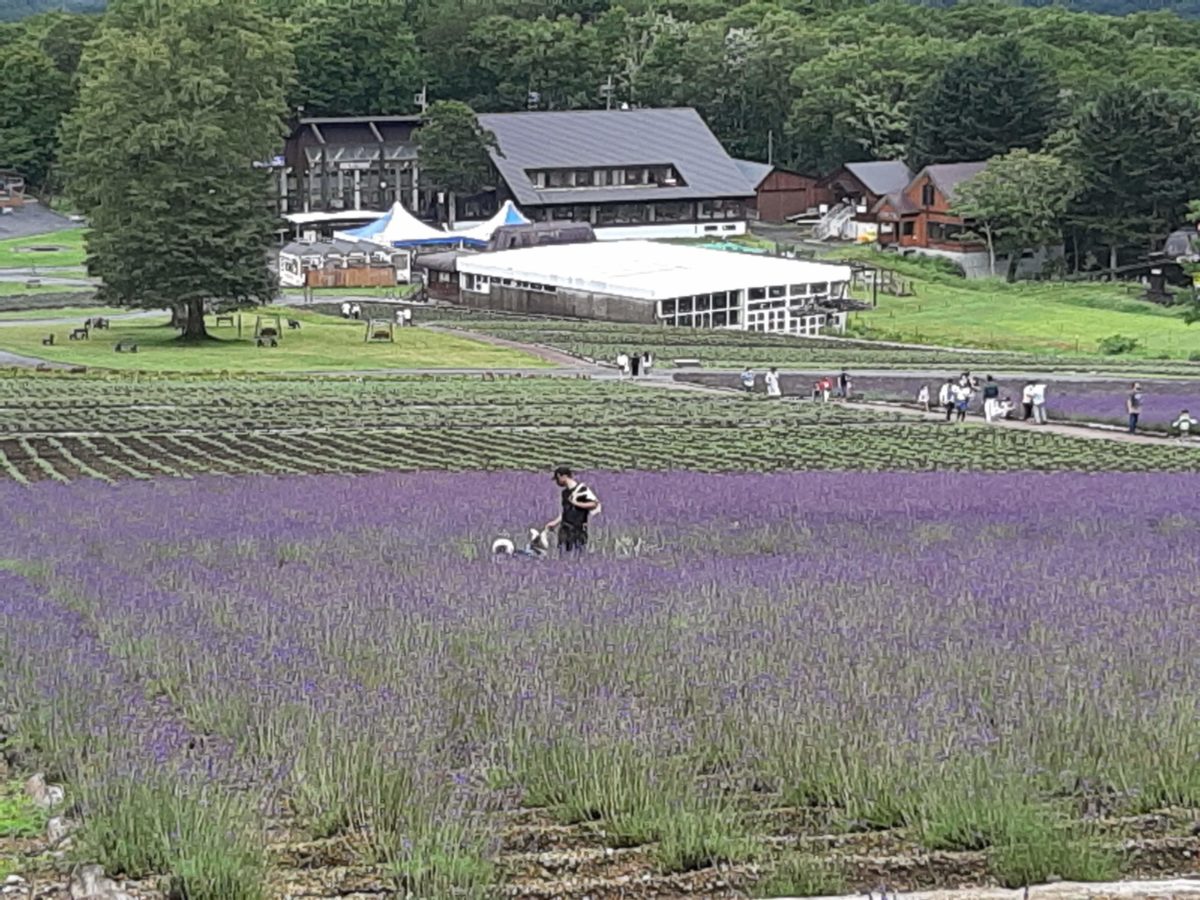 カフェから展望台へ散歩再開。雨で濡れた足元も乾いてきました。ラベンダー畑がステキです。