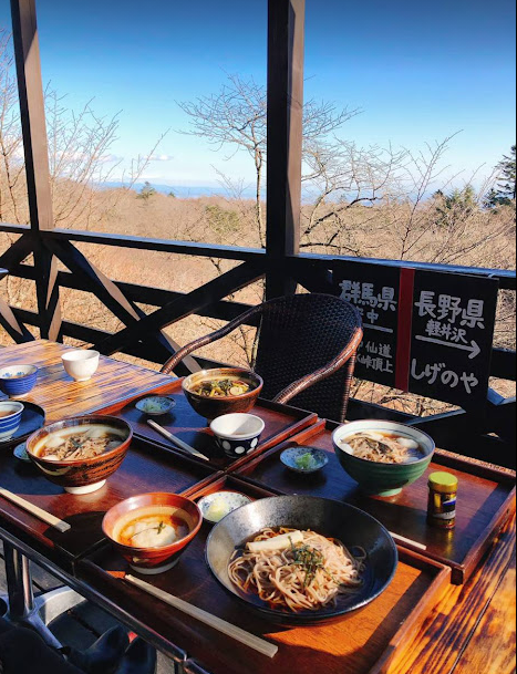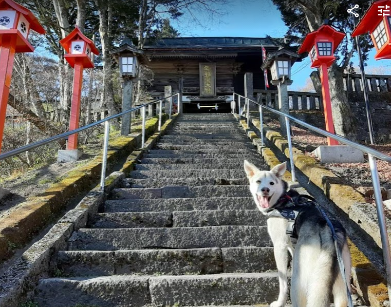 県境の神社(長野県と群馬県)、また縁結びの神社として知られいるこの神社は、確かにパワースポットを感じさせるすがすがしい空気でした。感動したのは蕎麦屋さん。モダンなこの蕎麦屋さんはペット入店可。テラス席で食べたそばが美味しかったので、きなこ餅も追加しました。食後は遊歩道を散歩。