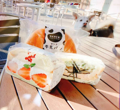 お昼はフルーツサンドイッチをテラス席で食べ、帰途へ。安全運転でね。